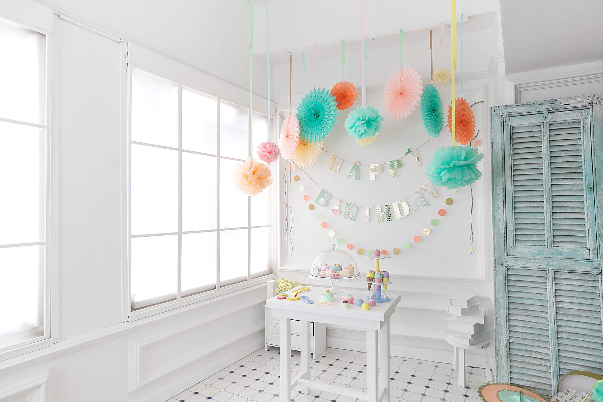 柔らかい光が差し込むスタジオはバースデーフォトからご家族写真までフォトジェニックな仕上がり。